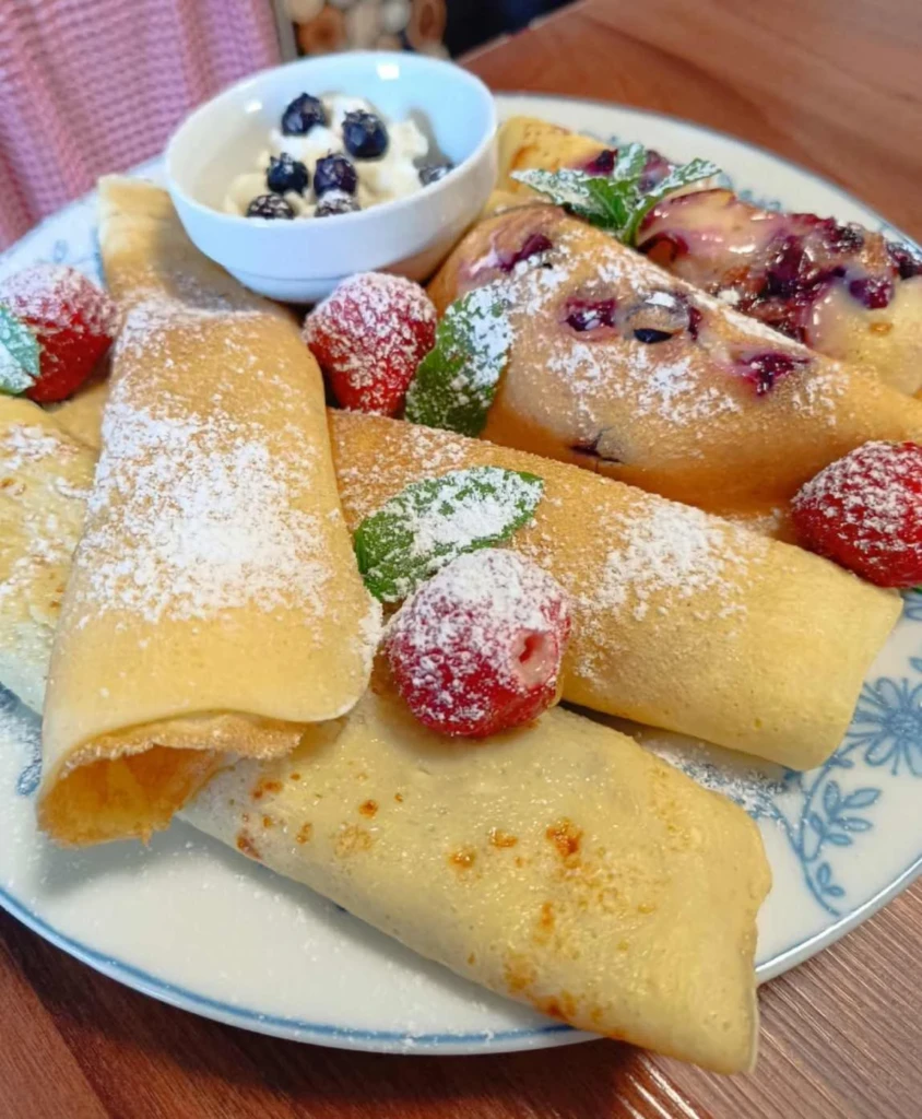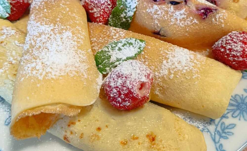 Vorgeschlagene Schlüsselwörter: Quark-Amoletky, süße Pfannkuchen, Quarkrezept, Amoleta mit Obst