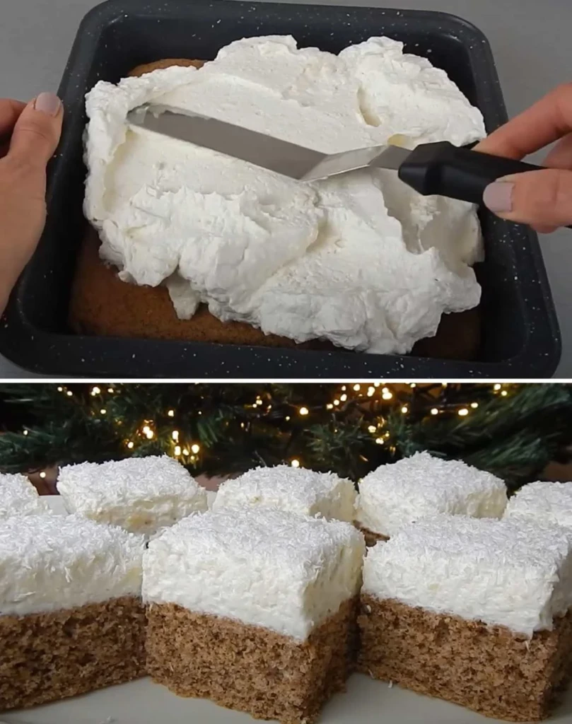 • Fertigstellung: Bestreuen Sie die Oberfläche des Gebäcks mit Kokosraspeln. Lassen Sie das Gebäck mindestens 1–2 Stunden im Kühlschrank ruhen, damit sich die Aromen verbinden.