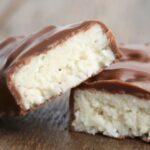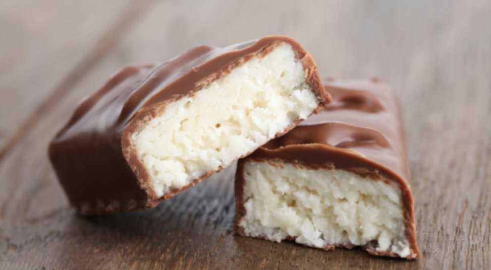 - Der letzte Schritt ist nur noch, die Kokosriegel in Schokolade zu überziehen.
