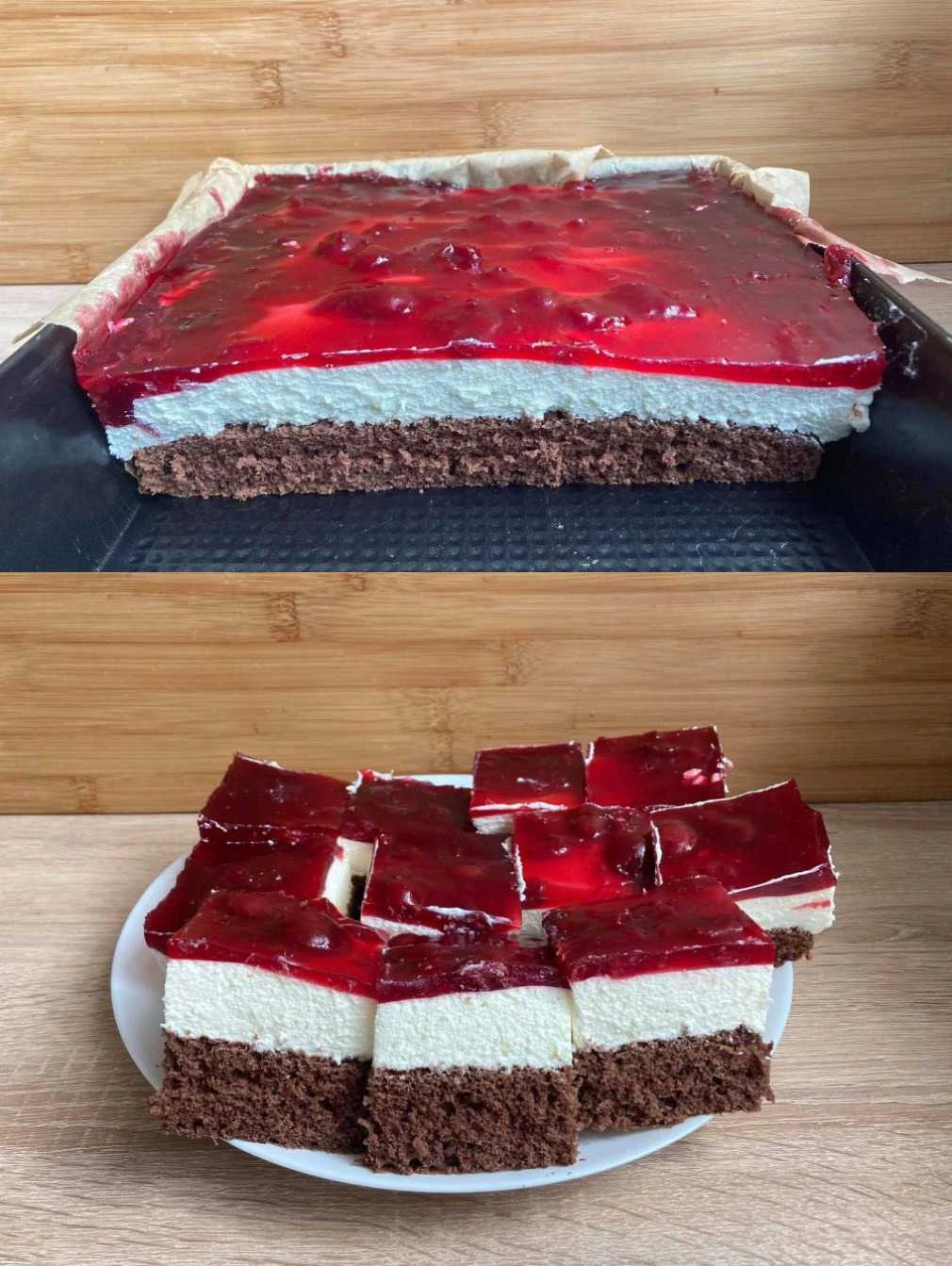 Der Kuchen „Rotkäppchen“ ist ideal für jeden Anlass – er ist erfrischend, leicht und schmackhaft. Eine tolle Wahl für diejenigen, die eher feinere Desserts bevorzugen. Bereiten Sie ihn am besten einen Tag vorher zu, damit Creme und Marmelade gut fest werden. Dieser Kuchen zaubert Ihnen mit Sicherheit ein Lächeln ins Gesicht!