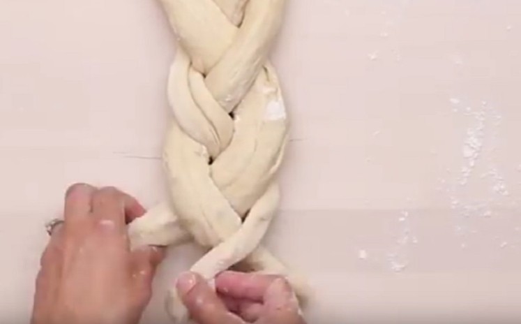 - Aus den drei Streifen flechten wir einen klassischen Zopf.