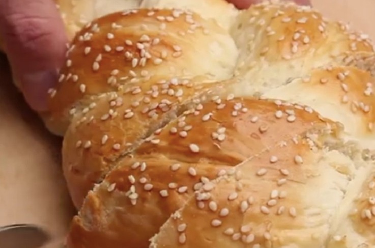 Rezept für einen französischen Zopf aus dem Beutel mit Sesam recept