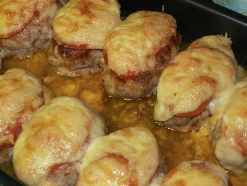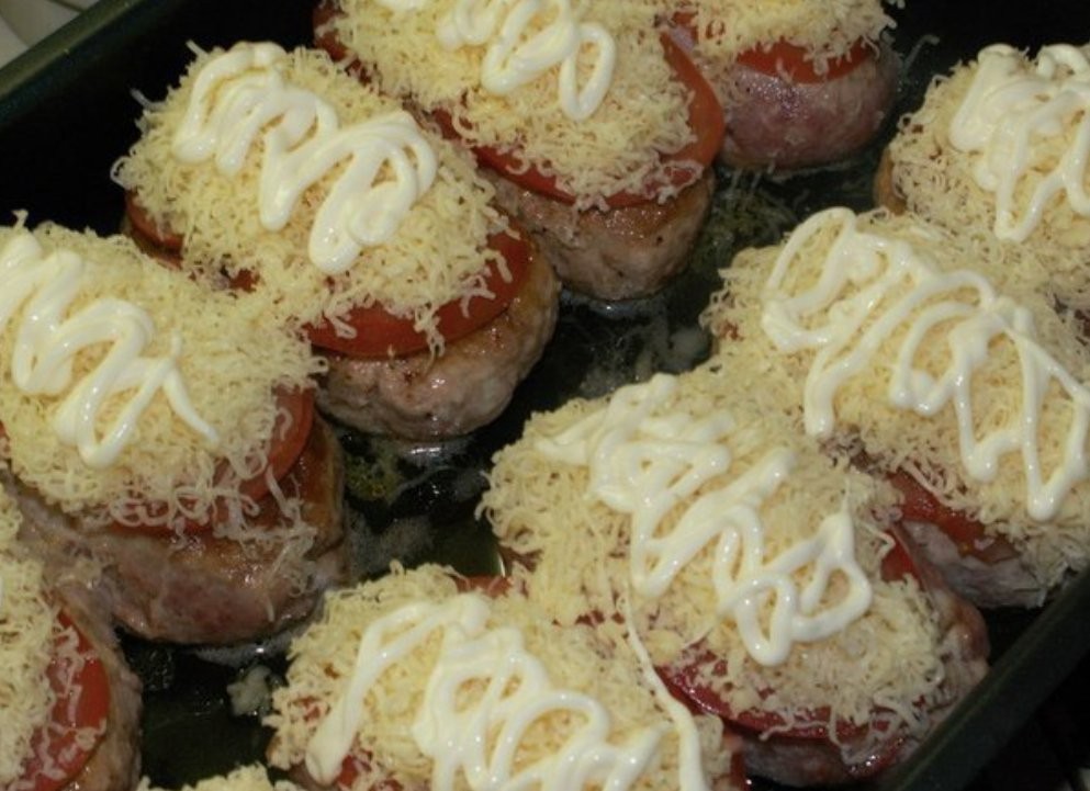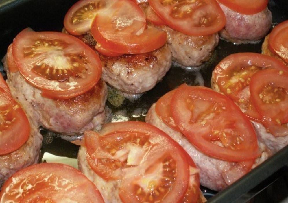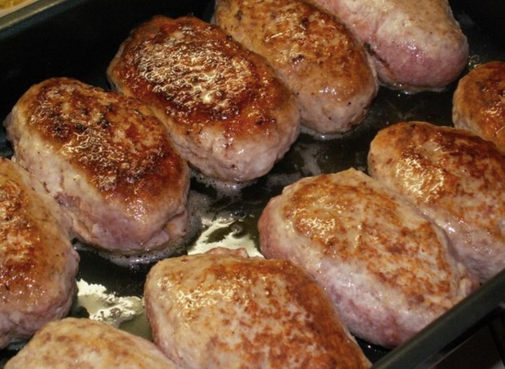 - Legen Sie die angebratenen Frikadellen auf ein Backblech, gießen Sie das Öl aus der Pfanne darüber und Sie können auch etwas Wasser hinzufügen.