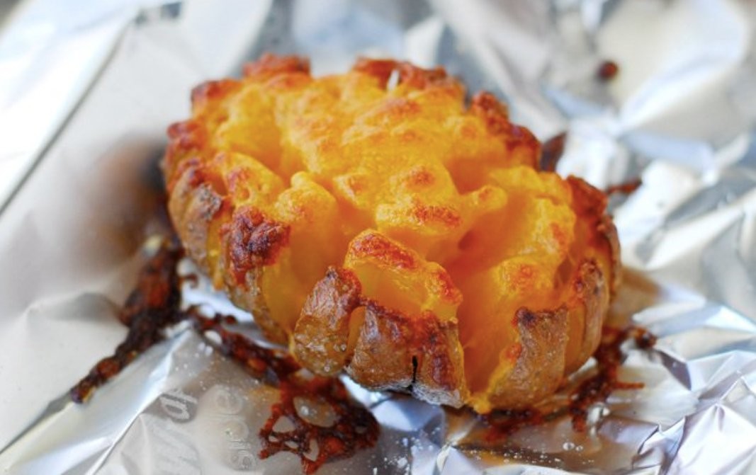 - Und die mit Käse überbackene Kartoffel ist fertig.