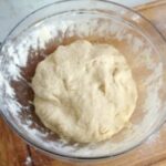 - Wir kneten einen elastischen Teig und fügen nach und nach das Wasser hinzu. Den gesamten Teig rühren wir mit einem Kochlöffel und anschließend noch mit den Händen.