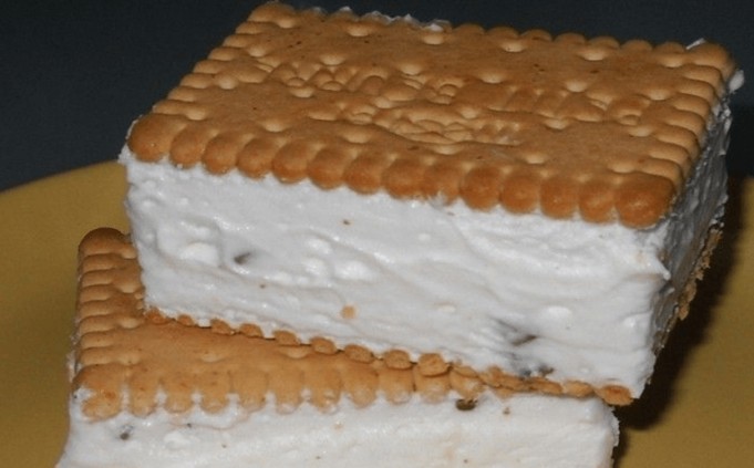 - Schichtung: Auf ein kleines Blech, mit Butterkeksen ausgelegt (für den Boden etwa 9 Kekse verwenden), geben Sie die vorbereitete Creme. Darauf legen Sie die übrigen Kekse.