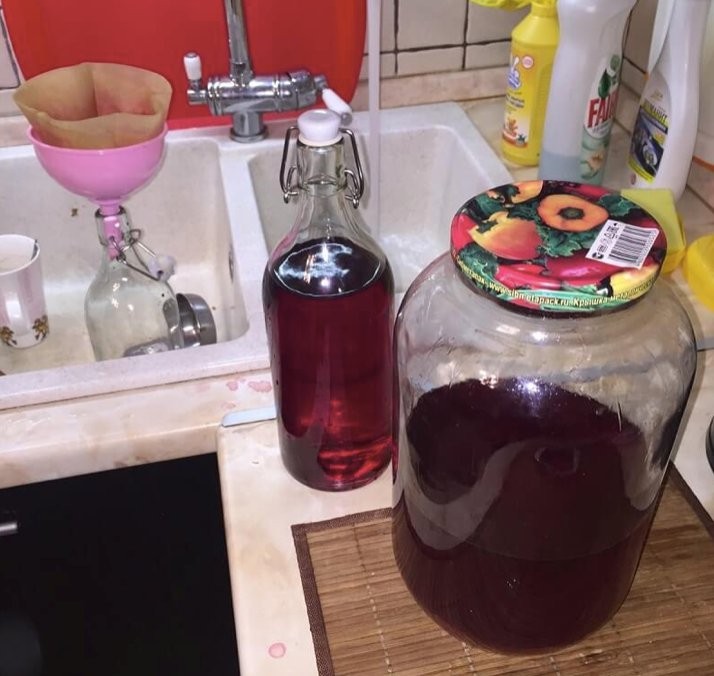 - Gießen Sie in ein Glasgefäß (am Ende sollten es mindestens drei Liter sein), verschließen Sie es mit einem Deckel und lagern Sie es an einem dunklen Ort.