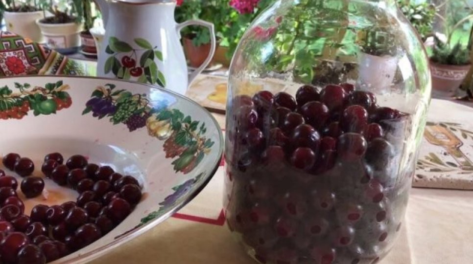- Geben Sie die zuvor gereinigten Beeren (Kirschen, Johannisbeeren usw.) in das Gefäß.