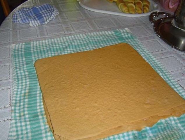 • Sie können zur Sicherheit Backpapier verwenden (wenn Sie den Teig nicht sehr dünn ausrollen können, können Sie den Teig in drei Teile teilen und drei etwas dickere Böden ausrollen).