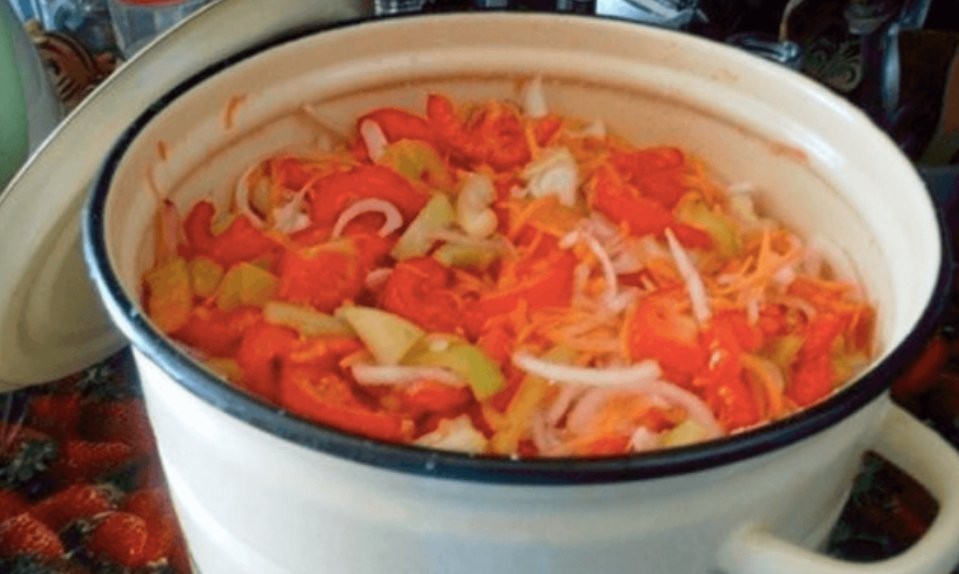 - Umrühren und 3-4 Stunden ziehen lassen – das Gemüse gibt Saft ab.