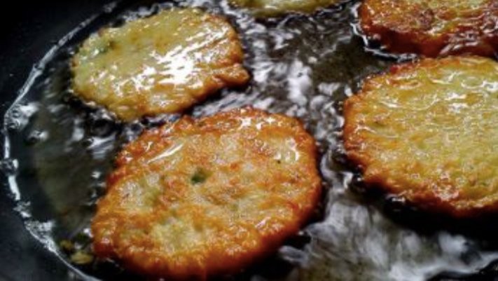 - Mit nassen Händen Bratlinge formen und diese in heißes Öl geben.