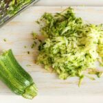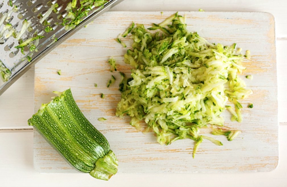 - Die Zucchini waschen, reiben und salzen.
