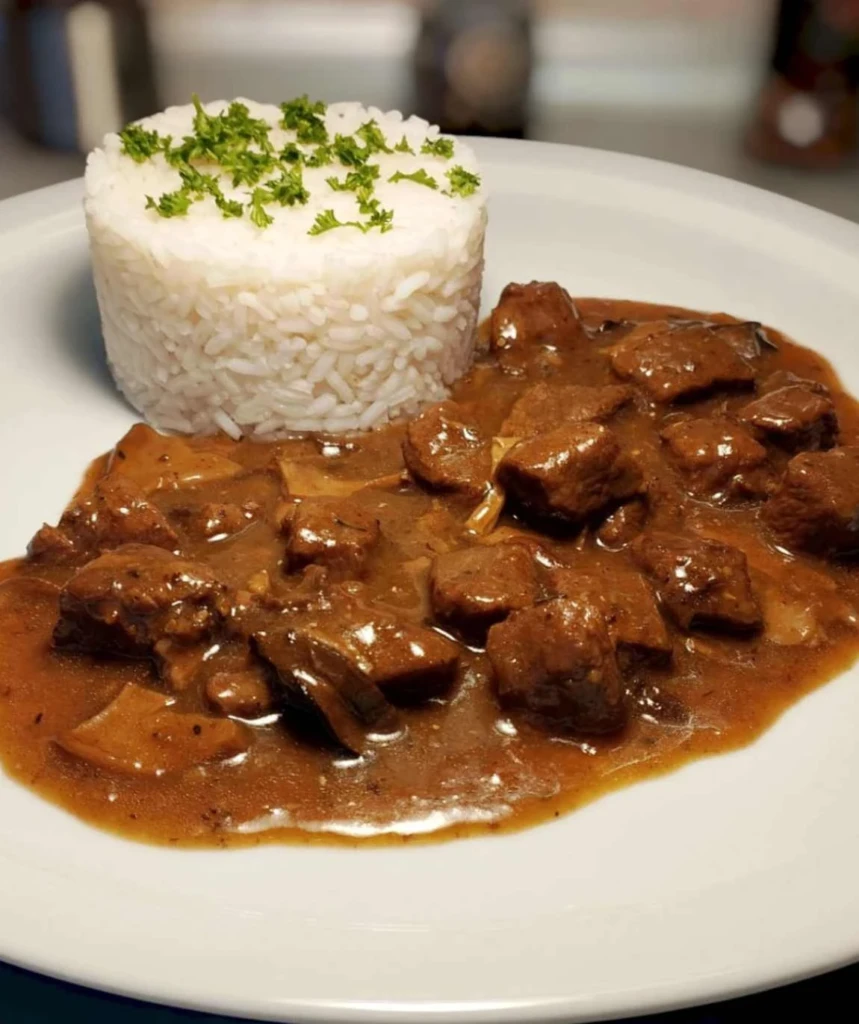 Dieses Gericht vereint die Zartheit des Rindfleisches, eine aromatische Pilzsauce und die Schlichtheit des Reises. Es eignet sich hervorragend für festliche Anlässe oder ein herzhaftes Sonntagsessen. Wenn Sie die Aromen des Waldes und traditionelle Rezepte lieben, wird Sie dieses Gericht sicher nicht enttäuschen.