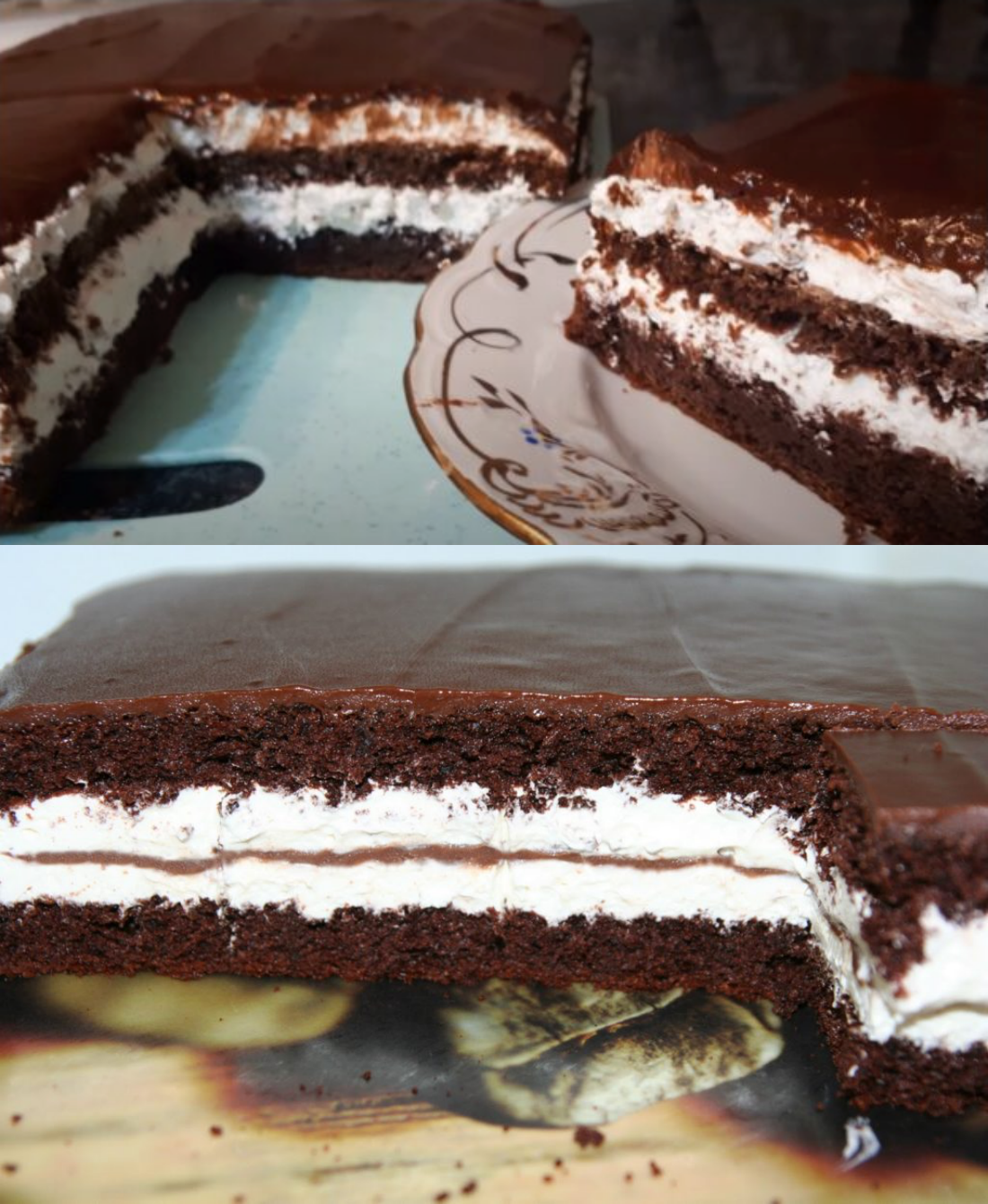 Schnelles und köstliches Dessert, das einen saftigen Teig aus Kondensmilch, eine zarte Quark‑Sahne‑Creme und eine Schokoladenglasur vereint. Durch den minimalen Arbeitsaufwand und das kurze Backen wird dieses zweistöckige Gebäck die ganze Familie lieben.