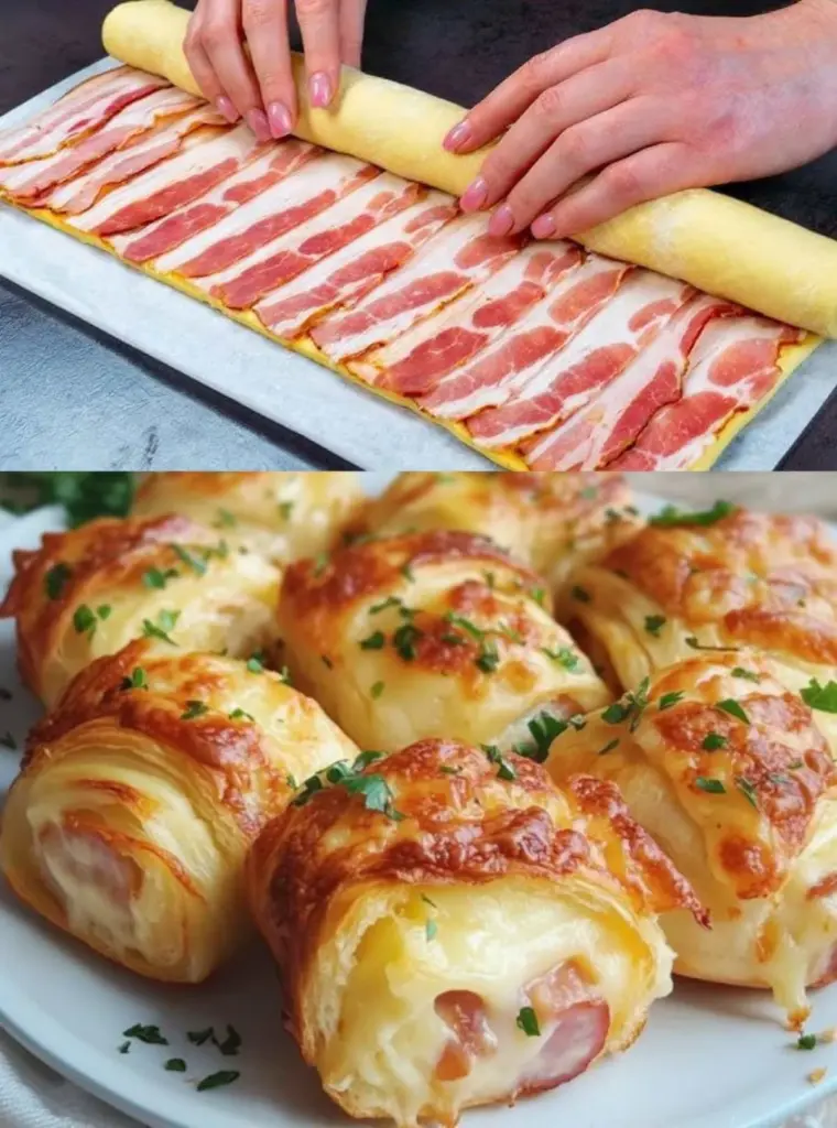 Den Käse können Sie nach Geschmack variieren, Niva oder Räucherkäse funktionieren ebenfalls sehr gut. Wenn Sie eine mildere Variante möchten, kann ein Teil des Specks durch Schinken ersetzt werden. Die Hörnchen eignen sich auch als Basis für weitere Füllungen, zum Beispiel mit Spinat oder Champignons.