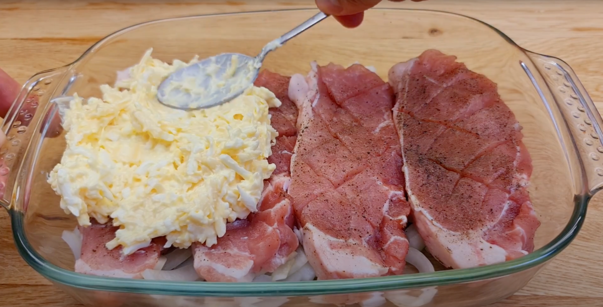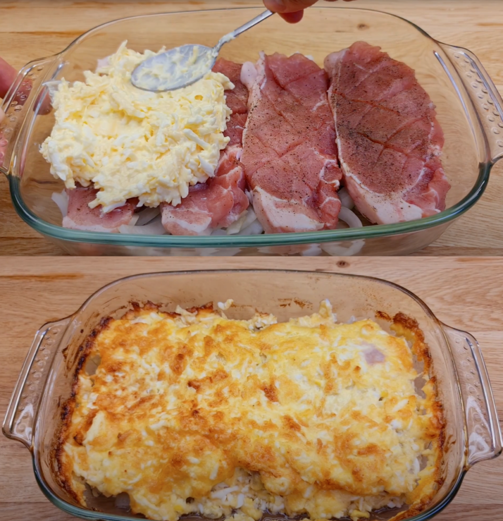 Dieses überbackene Schweine-Mittagessen wird Sie mit seiner Schnelligkeit und seinem ausgezeichneten Geschmack begeistern. Sie benötigen nur 10 Minuten Arbeit, der Ofen erledigt den Rest für Sie. Die Kombination aus Fleisch, Käse, Eiern und Mayonnaise schafft einen reichen Geschmack, den jeder am Tisch lieben wird. Sparen Sie Zeit, aber nicht den Geschmack – probieren Sie dieses Rezept noch heute aus!