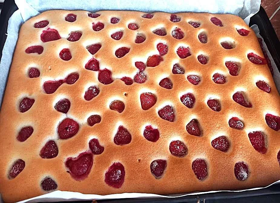 Diese einfache Erdbeer-Bublanina ist ideal als schneller Kuchen zum Kaffee, aber auch als Dessert für unerwarteten Besuch. Sie schmeckt auch am zweiten Tag hervorragend und lässt sich leicht mit anderem saisonalem Obst variieren. Probieren Sie sie aus — Sie werden sehen, sie ist im Nu vergriffen!