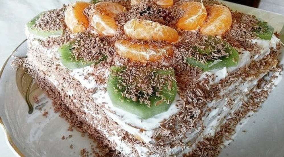 - Schichten Auf ein flaches Tablett oder eine Platte beginnen Sie, eine Schicht Vollkornkekse zu legen. Bestreichen Sie diese mit einem Teil der vorbereiteten Creme und fügen Sie dünn geschnittene Bananen hinzu. Fahren Sie mit einer weiteren Schicht Kekse, Creme und diesmal geschnittener Kiwi fort. Wiederholen Sie das Schichten, bis Sie alle Kekse und die Creme aufgebraucht haben.