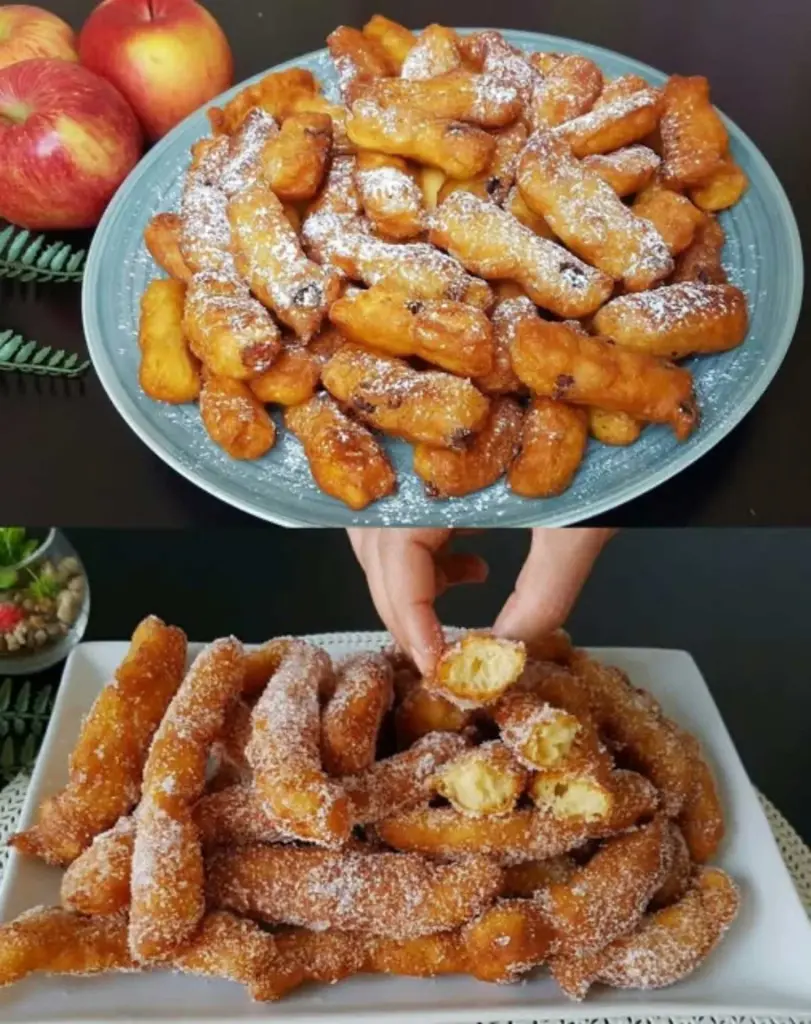 • Servírování: Bestreuen Sie die fertigen Köstlichkeiten mit Puderzucker und servieren Sie sie noch warm. Sie schmecken hervorragend pur, aber auch mit Honig, Ahornsirup oder Fruchtaufstrich.