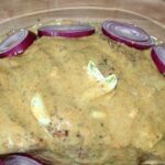 - Die Marinade auf das Fleisch schichten, mit Kräutern bestreuen und über Nacht im Kühlschrank lassen.