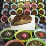 • Füllen der Förmchen: Gießen Sie in jedes Papierförmchen etwas Schokolade und lassen Sie sie kurz fest werden. Dann das Förmchen schräg halten, damit die Schokolade auch an die Seiten gelangt.