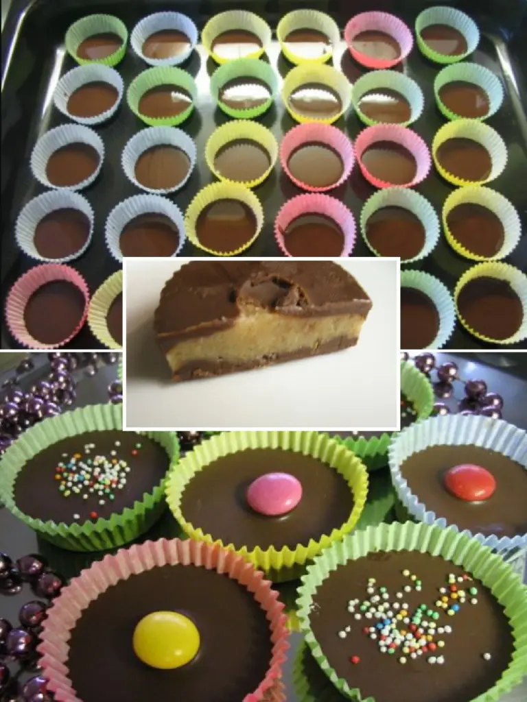 • Fertigstellung: Auf den fest gewordenen Boden eine kleine Portion der Nussfüllung geben und mit der restlichen Schokolade überziehen. Die Oberfläche kann mit Lentilky oder gehackten Nüssen garniert werden. Fest werden lassen bei Zimmertemperatur oder im Kühlschrank.