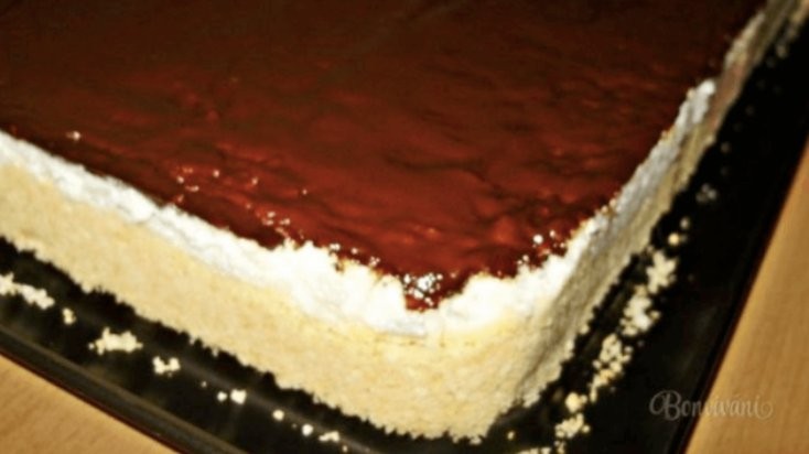 - Den gesamten Kuchen mit der Glasur überziehen und im Kühlschrank richtig fest werden lassen