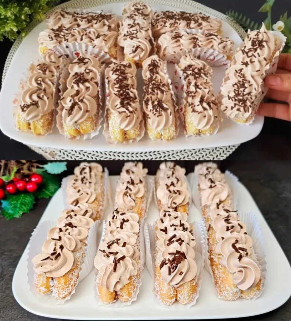 • Fertigstellung: Dekorieren Sie die Biskuits mit einer Schicht Creme, bestreuen Sie sie mit Schokoladenstreuseln und servieren Sie sie sofort oder stellen Sie sie für eine Weile in den Kühlschrank.