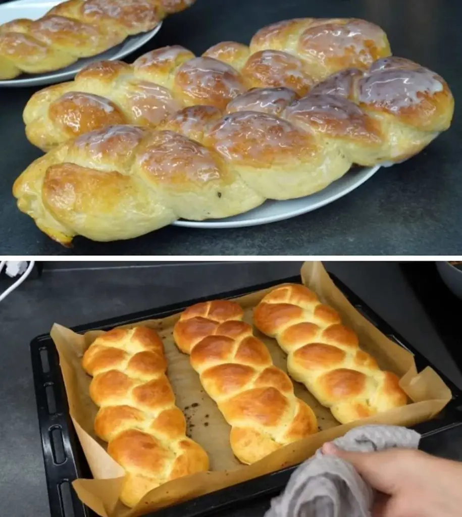 • Fertigstellung Die heißen Zöpfe sofort mit gezuckerter Kondensmilch bestreichen. Sie zieht in die Kruste ein und das Gebäck wird noch zarter und aromatischer.