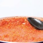 - Hacken Sie den Knoblauch und die rote Paprika fein