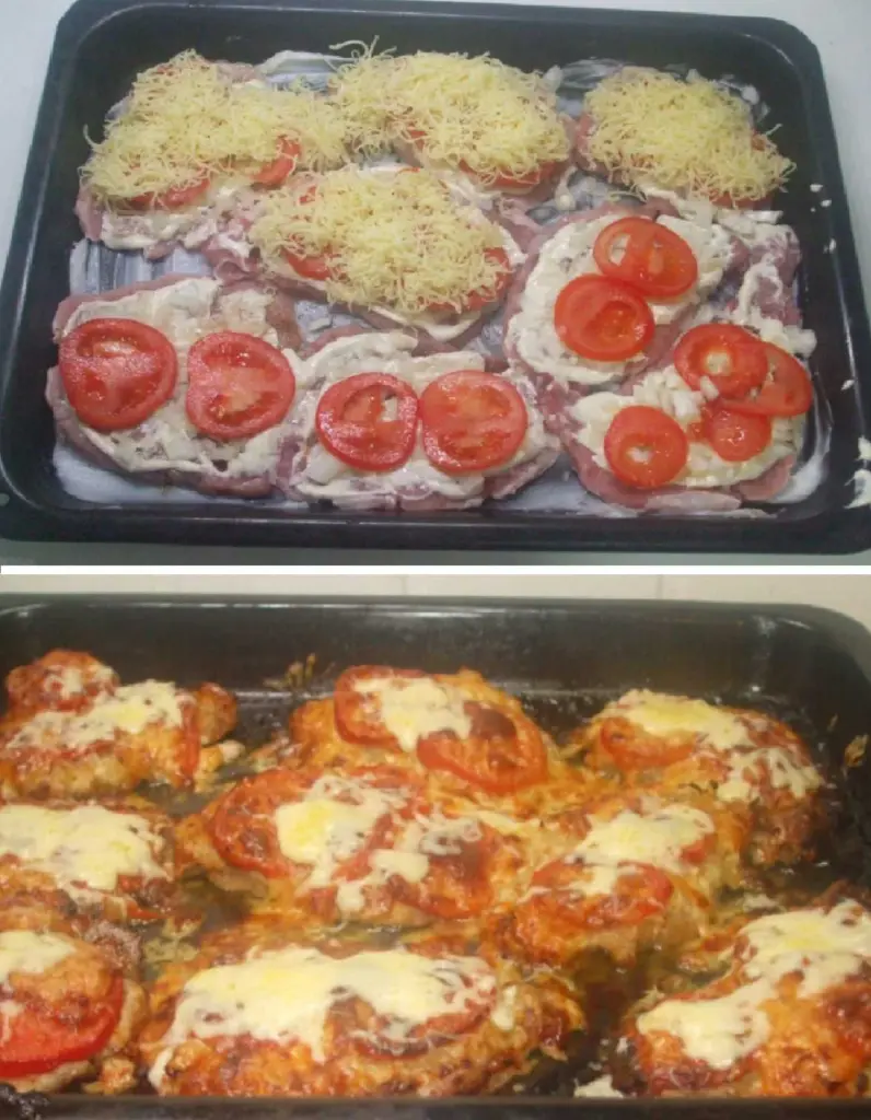 Überbackene Hähnchenschnitzel mit Zwiebeln, Tomaten und Käse sind eine einfache Lösung für ein schnelles und sättigendes Abendessen. Durch die Zubereitung in einer Auflaufform sparen Sie Geschirr und Zeit und erhalten dennoch ein geschmacklich reichhaltiges Gericht. Scheuen Sie sich nicht, das Rezept durch das Hinzufügen Ihrer Lieblingskräuter oder frischem Basilikum für eine sommerliche Variante zu variieren.