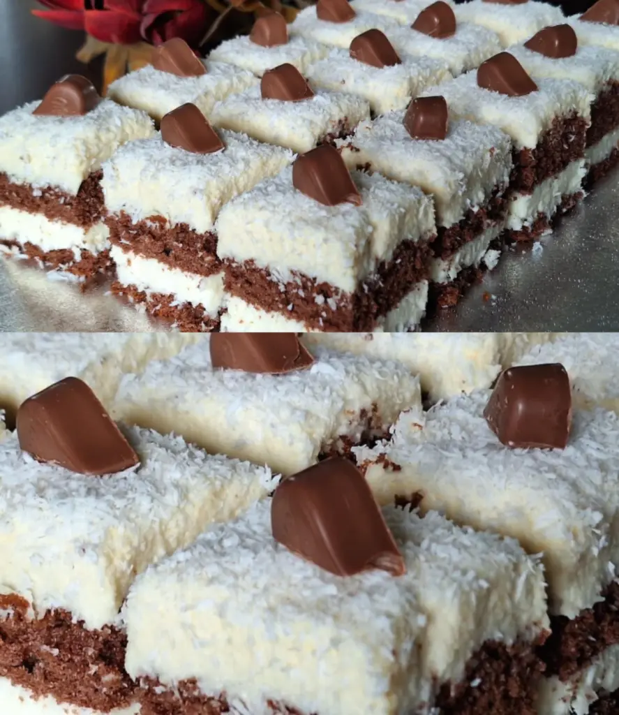 Der Vanille-Kokos-Traum meiner Frau ist ein Gebäck, das zur Zierde jedes festlichen Tisches wird. Die Kombination aus einem saftigen Kakao-Boden, einer luftigen Kokoscreme und einer reichhaltigen Vanillecreme schmeckt perfekt ausbalanciert. Wenn Sie ein Dessert „auf Nummer sicher“ suchen, das jeder lieben wird, enttäuscht dieses Rezept nicht.