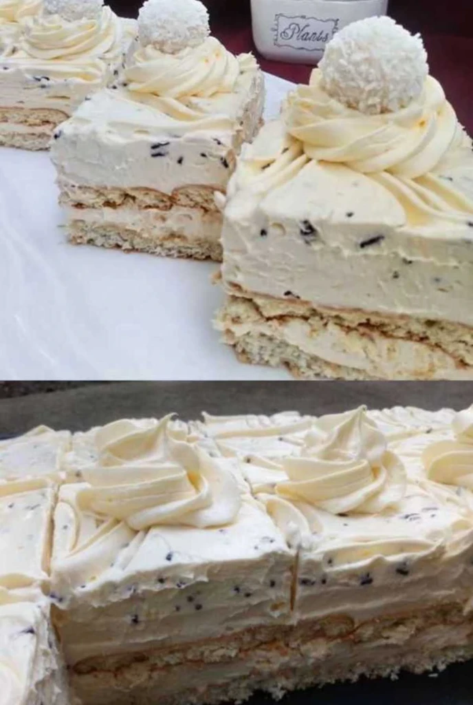Der ungebackene Raffaello-Kuchen ist eine luxuriöse Köstlichkeit, die Sie ohne Backen, aber mit maximaler Wirkung zubereiten. Die Kokoscreme, die zarte Glasur und die knusprigen Kekse bilden eine perfekte Geschmacksharmonie, der man nicht widerstehen kann. Dieser Kuchen ist eine ideale Wahl für festliche Anlässe, eignet sich aber auch hervorragend als süßer Abschluss zum Sonntagskaffee.