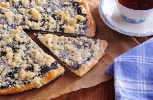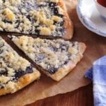 - Füllung und Streusel: Jeden Frgál mit der gewählten Füllung bestreichen (Pflaumenmus, Mohn, Quark, usw.). Mit Streuseln bestreuen, die Sie aus Mehl, Zucker, Vanillepuddingpulver und geschmolzener Butter zubereiten.