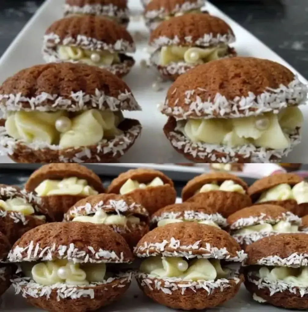 • Fertigstellung Gestürzte Muscheln in Kokosraspeln wälzen. Jede mit der Eigelbcreme füllen – am besten mit einem Spritzbeutel. Vor dem Servieren kurz kühlen, damit die Creme ihre Form gut hält.