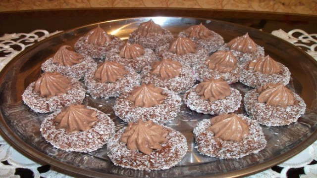 - Mit Schlagsahne verzieren: Schokoladensahne steif schlagen. Verwenden Sie einen Spritzbeutel, um in die Mitte jedes Nestes ein Muster aus Schokoladensahne zu setzen.