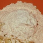 - Alles gründlich vermischen, bis eine einheitliche Masse entsteht. Falls die Masse zu flüssig erscheint und sich schlecht verarbeiten lässt, fügen wir noch eine kleine Menge Mehl hinzu.