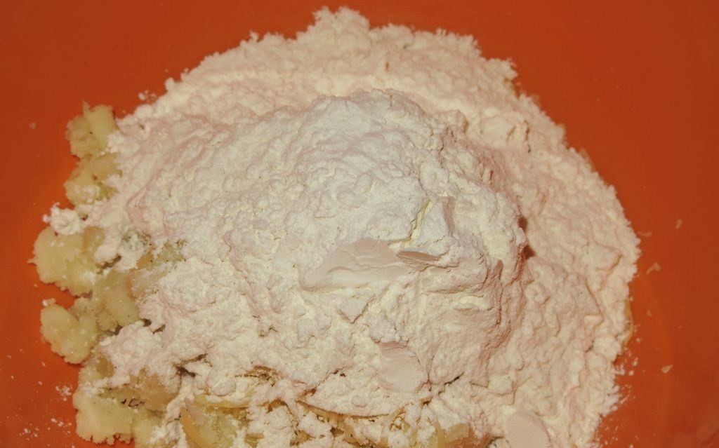 - Nach dem Kochen gießen wir das gesamte Wasser ab und zerdrücken die Kartoffeln zu einer feinen Masse. Wir lassen sie auf Zimmertemperatur abkühlen, damit man besser mit ihnen arbeiten kann.