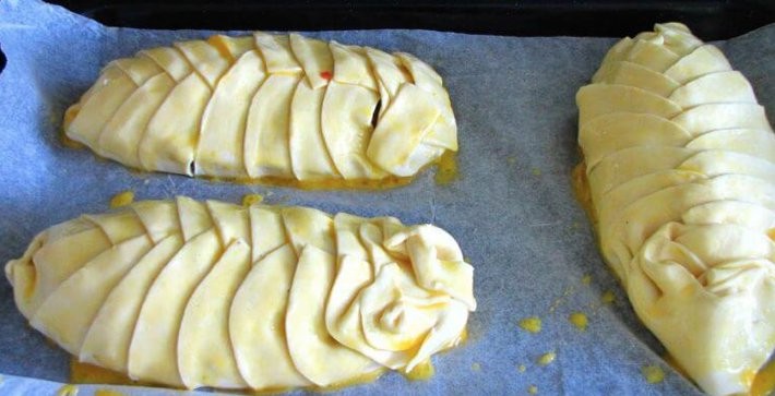 - Bestreichen Sie sie mit verquirltem Ei und backen Sie bei 200 Grad, etwa 15-20 Minuten.