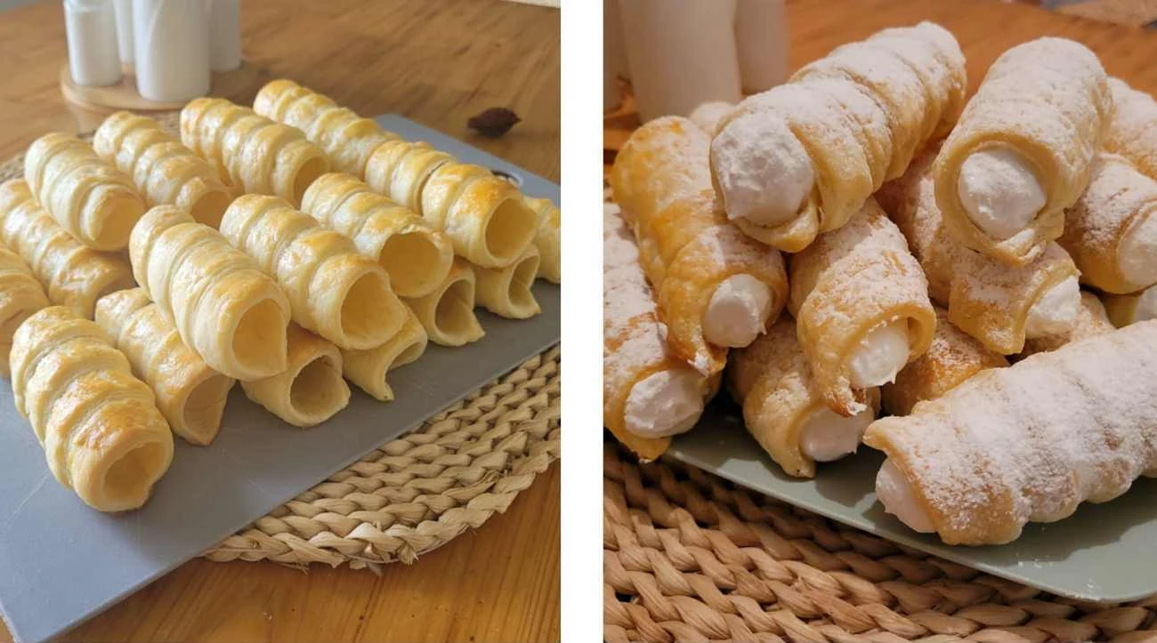 Hausgemachte Kremrollen nach dem Rezept der Großmutter zeichnen sich durch zarten Buttermürbeteig und eine feine Schlagsahnefüllung aus. Durch das Ruhen über Nacht erhält der Teig die richtige Struktur, die beim Backen schön aufgeht und knusprig wird. Bereiten Sie dieses Dessert als festliche Köstlichkeit für Familie und Freunde zu.