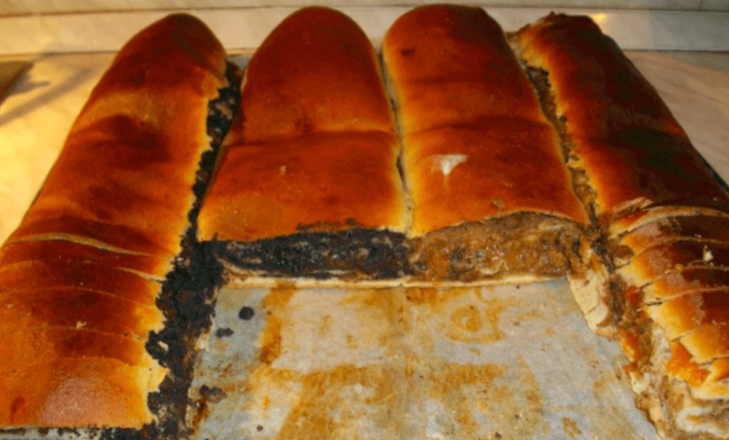 - Formen der Strudel: Holen Sie den Teig aus dem Kühlschrank, teilen Sie ihn in 4 Stücke und rollen Sie jedes Stück nacheinander auf einer bemehlten Arbeitsfläche zu dünneren Platten aus. Füllen Sie jede Platte mit der von Ihnen gewählten Füllung (Mohn- oder Nussfüllung), rollen Sie sie auf und legen Sie sie dicht nebeneinander auf ein mit Fett eingefettetes Backblech.