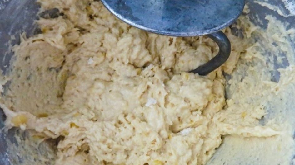 - Erneut gut umrühren. Der Teig sollte klebrig sein.