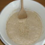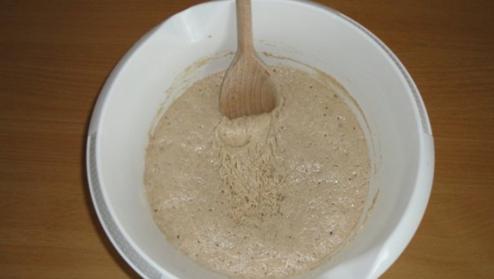 - Wenn der Vorteig aufgeht, fügen wir die übrigen Zutaten außer dem Kakao hinzu und kneten einen gleichmäßigen Teig. Den Teig teilen wir in zwei Teile und in einen davon geben wir Kakao.
