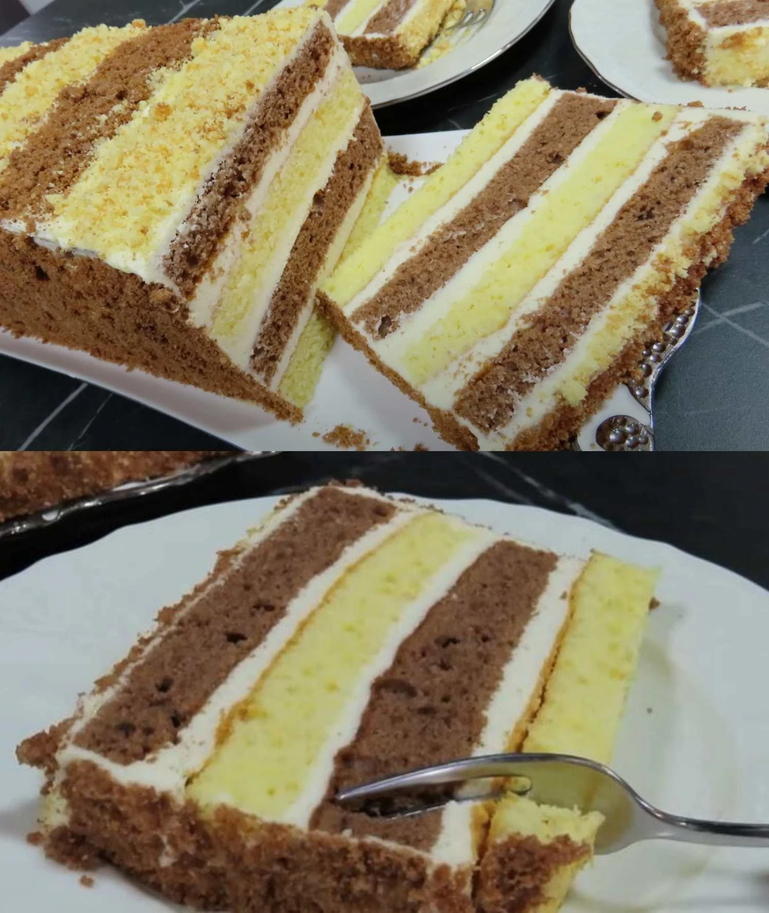 Der Kuchen ist saftig, hält die Form und dank des zweifarbigen Belags sieht er auch auf dem festlichen Tisch großartig aus. Am besten nach dem Durchziehen bis zum nächsten Tag, wenn sich die Aromen vollständig verbinden.