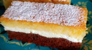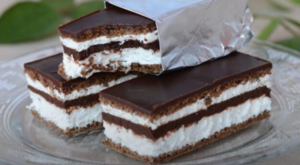Dreifarbige Schnitten mit Quarkcreme – traditionelles Dessert voller Kontraste