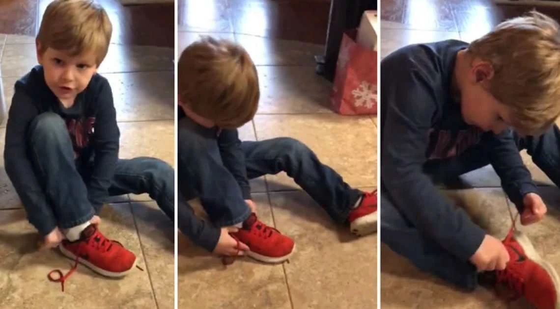 Schuhe zu binden ist für Kinder ein wichtiger Schritt zur Selbstständigkeit. Dank der einfachen Methode, die der fünfjährige Junge gezeigt hat, wird diese Fähigkeit leicht und spaßig. Wenn Sie nach einer Möglichkeit suchen, Ihrem Kind ohne Stress das Schnürsenkelbinden beizubringen, probieren Sie diesen Trick auf jeden Fall aus.