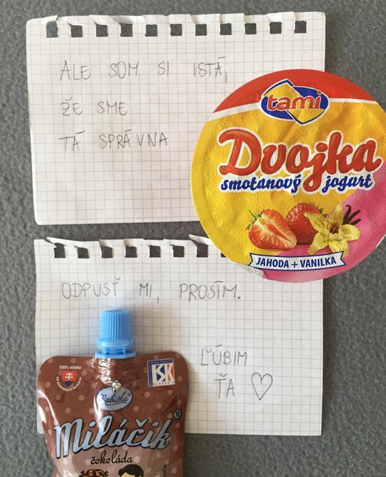 „Gestern habe ich mich ein wenig mit meinem Schatz gestritten, und heute habe ich ihm so einen Zettel hinterlassen. Wenn ihr das veröffentlicht, dann bitte anonym. Wie man einen Mann wieder besänftigt, der naschhaft ist.“