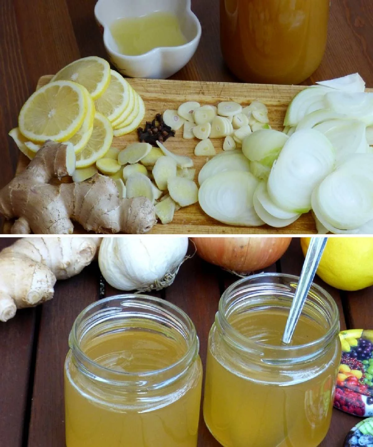 Dieser Sirup ist eine wahre Vitamingalasing. Er vereint die heilenden Wirkungen mehrerer starker natürlicher Zutaten, die das Immunsystem stärken, den Organismus reinigen und die Atemwege beruhigen. Zwiebeln und Knoblauch sind für ihre antibakteriellen und antiviralen Eigenschaften bekannt, Ingwer wärmt den Körper und lindert Husten, Zitrone liefert Vitamin C und Honig verbindet alles zu einer köstlichen Mischung, die dem Körper bei der Genesung hilft.