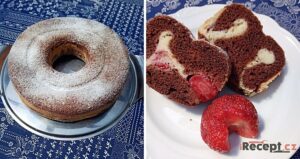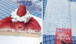 Quarkkuchen, gefüllt mit Himbeeren oder Erdbeeren, der einfach und zugleich hervorragend zum Kaffee ist.