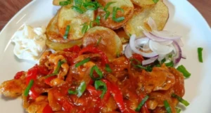 Extra scharfes Katův šleh mit gebackenen Kartoffeln